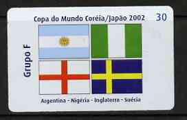 Telephone Card - Brazil 2002 World Cup Football 30 units phone card for Group F showing flags of Argentine, Nigeria, England & Sweden