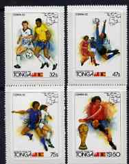 Tonga 1982 World Cup Football self-adhesive set of 4 opt'd SPECIMEN, as SG 809-12 (blocks or gutter pairs pro rata) unmounted mint