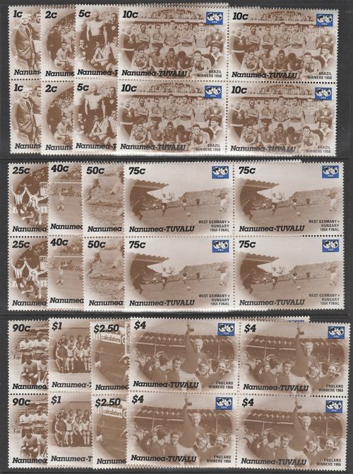 Tuvalu - Nanumea 1986 World Cup Football Champions complete set of 12 in superb unmounted mint blocks of 4