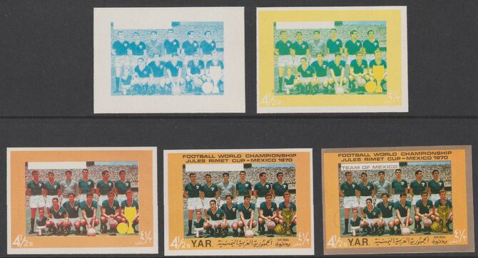 Yemen - Republic 1970 Football World Cup - 4.5B Mexico Team the set of 5 progressive proofs comprising 1, 2, 3, 4 colours and completed design all unmounted mint as Michel1148