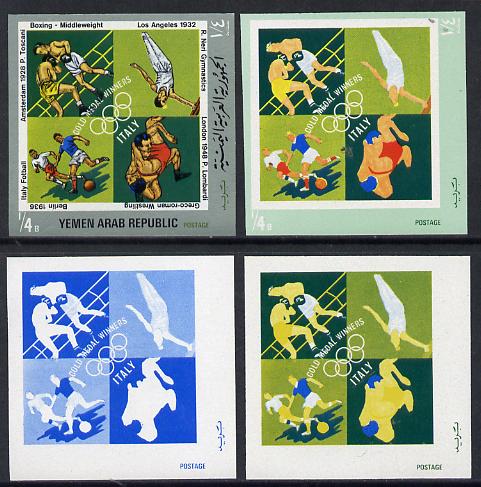 Yemen - Republic 1971 Italian Olympic Gold Medal Winners 1/4b (Boxing, Gymnastics, Wrestling & Football) set of 4 imperf progressive proofs comprising single & multi-colour composites, a superb and important group unmounted mint (as Mi 1480)