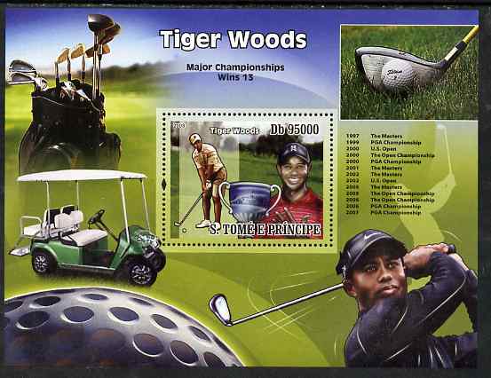 St Thomas & Prince Islands 2008 Golf (Tiger Woods) perf souvenir sheet unmounted mint