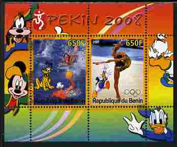 Benin 2007 Beijing Olympic Games #28 - Water Polo & Gymnastics perf s/sheet containing 2 values (Disney characters in background) unmounted mint. Note this item is privately produced and is offered purely on its thematic appeal
