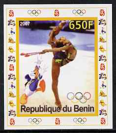 Benin 2007 Gymnastics #3 - individual imperf deluxe sheet with Olympic Rings & Disney Character unmounted mint. Note this item is privately produced and is offered purely on its thematic appeal