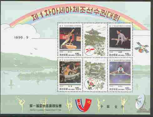 North Korea 1996 Gymnastics Championship perf sheetlet containging 4 x 15ch values plus 2 labels