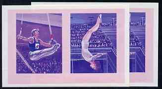 St Vincent - Bequia 1984 Olympics (Leaders of the World) 1c (Rings & Gymnastics) imperf se-tenant progressive colour proof pair in magenta & blue only unmounted mint