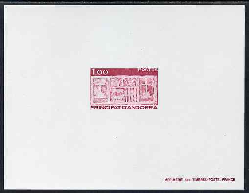 Andorra - French 1983-90 Early Coat of Arms 1f def Epreuves de luxe card in issued colours as SG F341