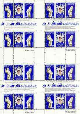 Falkland Islands 1978 Coronation 25th Anniversary (QEII, Dragon & Ram) in complete uncut sheet of 24 unmounted mint (8 strips of SG 348a)