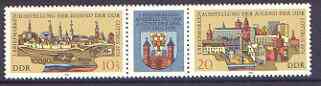 Germany - East 1978 National Youth Stamp Exhibition se-tenant pair plus label unmounted mint, SG E2058a