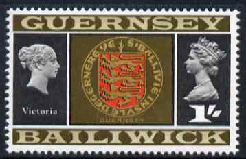 Guernsey 1969-70 9d Arms of Guernsey,& Queen Victoria unmounted mint, SG 22