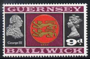Guernsey 1969-70 9d Arms of Sark & George III unmounted mint, SG 21