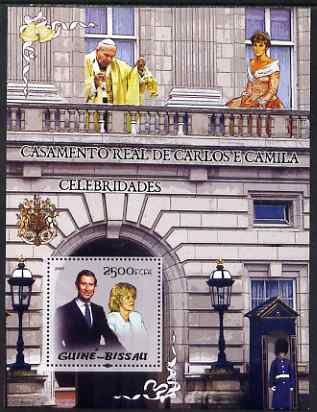 Guinea - Bissau 2005 Royal Wedding Prince Charles and Camilla Parker Bowles perf souvenir sheet (also featuring Pope Jean-Paul II and Princess Diana) unmounted mint Mi,Bl 482