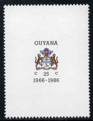 Guyana 1986 20th Anniversary of Independence - 2nd Issue - Arms of Guyana 25c vertical format inscribed 1966-1986 unmounted mint SG 1821a