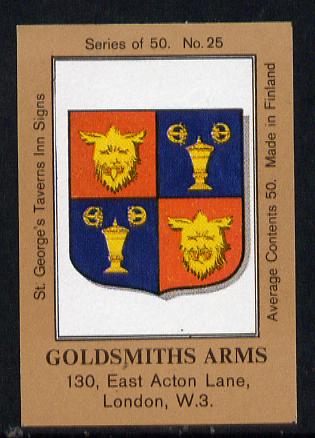 Match Box Labels - Goldsmith's Arms (No.25 from a series of 50 Pub signs) light brown background, very fine unused condition (St George's Taverns)