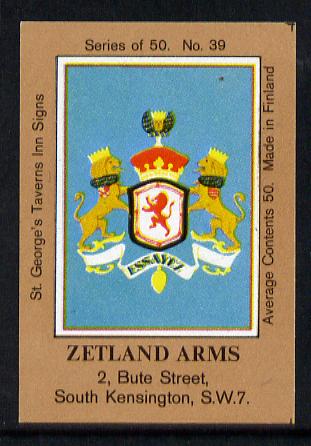Match Box Labels - Zetland Arms (No.39 from a series of 50 Pub signs) light brown background, very fine unused condition (St George's Taverns)