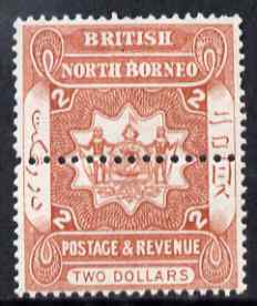 North Borneo 1888 Arms $2 perforated colour trial in orange with additional horiz row of perforations through centre fresh mounted mint, as SG 48