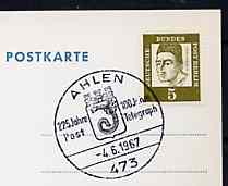 Postmark - West Berlin 1967 postcard with special cancellation for 225 Years of the Post in Ahlen illustrated with Towns Arms