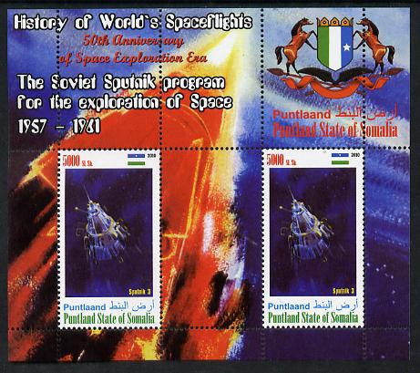 Puntland State of Somalia 2010 History of Space Flight - Soviet Sputnik Programme #1 perf sheetlet containing 2 values unmounted mint