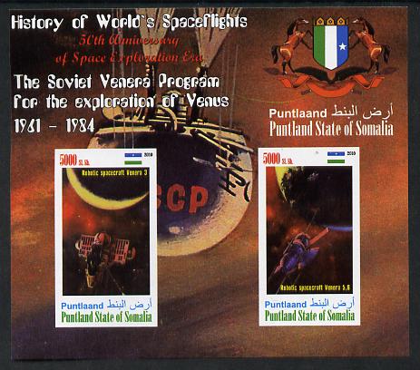 Puntland State of Somalia 2010 History of Space Flight - Soviet Venus Probe #1 imperf sheetlet containing 2 values unmounted mint