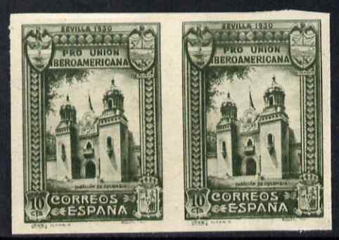 Spain 1930 Colombian Pavillion 10c olive green (from Spanish-American Exhibition) imperf pair unmounted mint but some offset, as SG 630