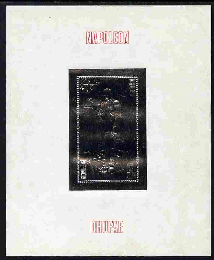 Dhufar 1979 Napoleon 5r value embossed in silver on thin deluxe card unmounted mint