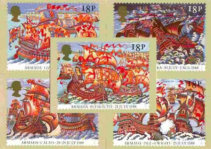 Great Britain 1988 Spanish Armada 400th Anniversary set of 5 PHQ cards unused and pristine