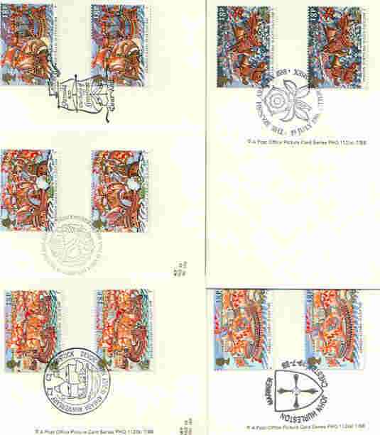 Great Britain 1988 Spanish Armada 400th Anniversary set of 5 PHQ cards with appropriate gutter pairs each very fine used with first day cancels