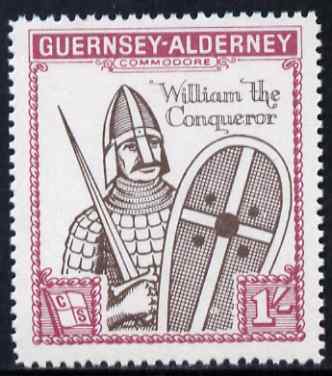 Guernsey - Alderney 1966 900th Anniversary of Norman Conquest 1s sepia & rose perf with Norman Conquest overprint omitted, unmounted mint, Rosen CSA 63var