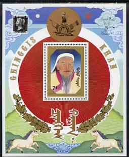 Mongolia 1990 'Stamp World London 90' Stamp Exhibition (2st issue) perf m/sheet (overprint on Coronation of Genghis Khan) unmounted mint, SG MS 2107