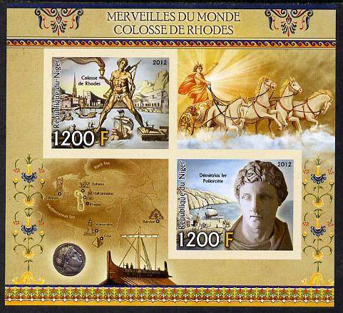 Niger Republic,2012 Wonders of the World - Colossus of Rhodes imperf sheetlet containing 2 values unmounted mint