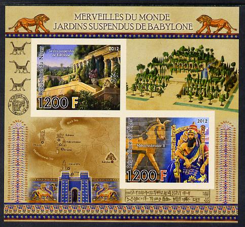 Niger Republic,2012 Wonders of the World - Hanging Gardens of Babylon imperf sheetlet containing 2 values unmounted mint