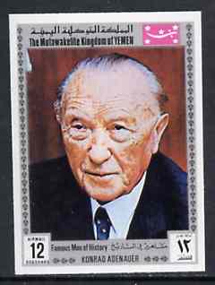 Yemen - Royalist 1969 Famous Men of History 12b Adenauer from imperf set of 11 unmounted mint Mi 849B*