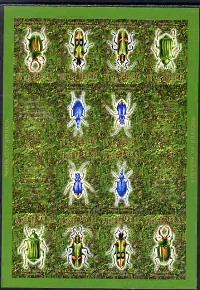 Abkhazia 1999 Beetles #1 imperf sheetlet of 16 containing 6 stamps & 2 labels arranged in Tete-beche format, unmounted mint
