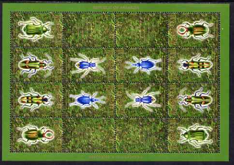 Abkhazia 1999 Beetles #1 perf sheetlet of 16 containing 6 stamps & 2 labels arranged in Tete-beche format, unmounted mint