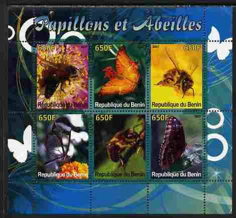 Benin 2007 Butterflies & Bees perf sheetlet containing 6 values unmounted mint. Note this item is privately produced and is offered purely on its thematic appeal