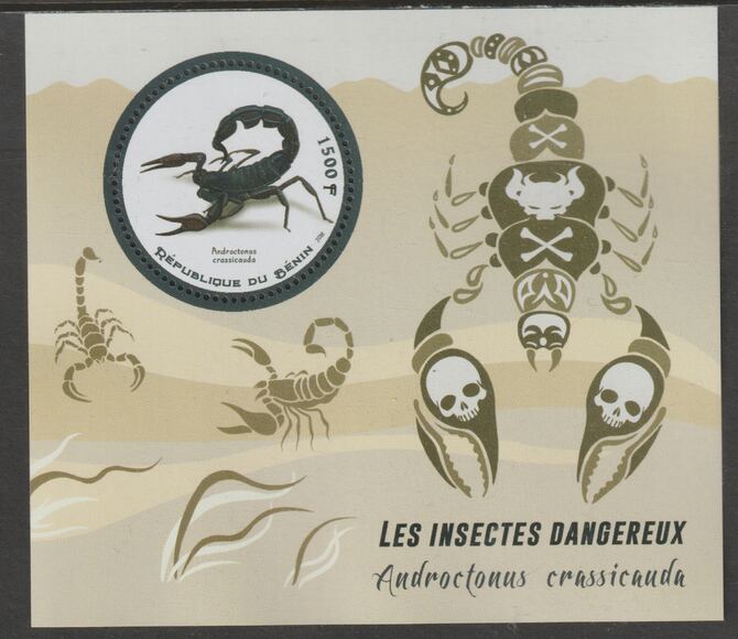 Benin 2018 Endangered Insects - Arabian Scorpion perf deluxe m/sheet containing one circular value unmounted mint