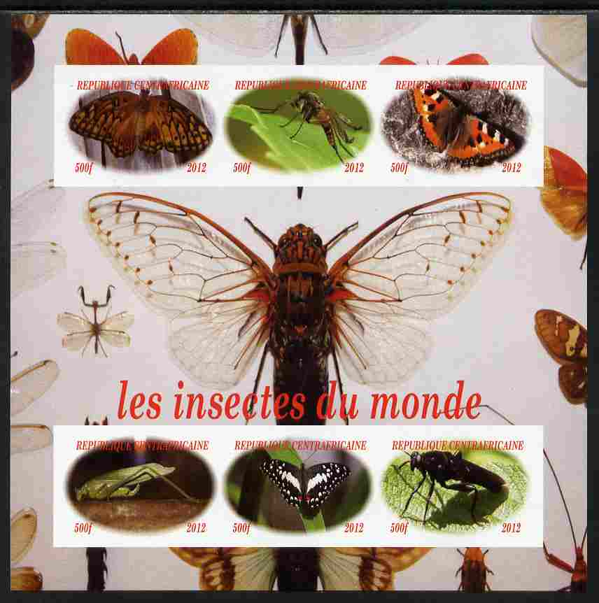 Central African Republic 2012 Insects of the World imperf sheetlet containing 6 values unmounted mint. Note this item is privately produced and is offered purely on its thematic appeal, it has no postal validity