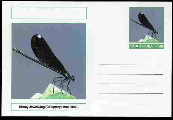 Chartonia (Fantasy) Insects - Ebony Jewelwing (Calopteryx maculata) postal stationery card unused and fine