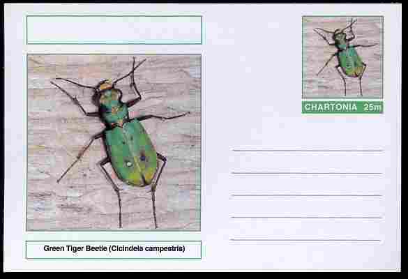Chartonia (Fantasy) Insects - Green Tiger Beetle (Cicindela campestris) postal stationery card unused and fine