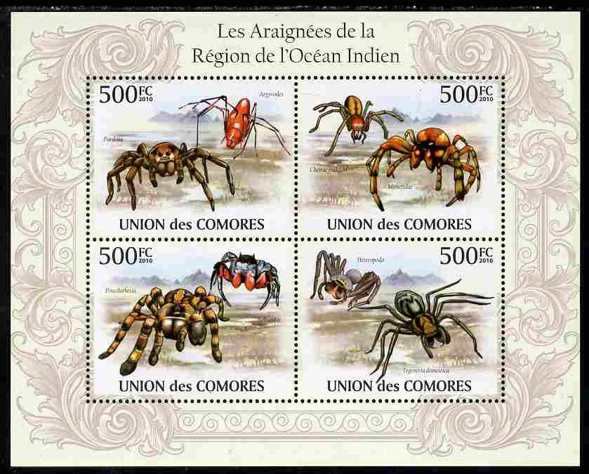 Comoro Islands 2010 Spiders from the Indian Ocean Region perf sheetlet containing 4 values unmounted mint, Michel 2677-80