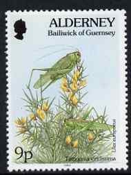 Guernsey - Alderney 1994-98 Flora & Fauna Defs 9p Grasshopper & Gorse unmounted mint SG A68