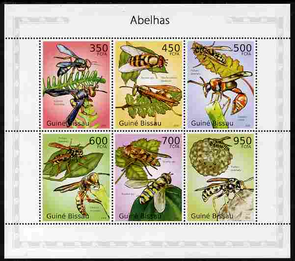 Guinea - Bissau 2010 Wasps perf sheetlet containing 6 values unmounted mint