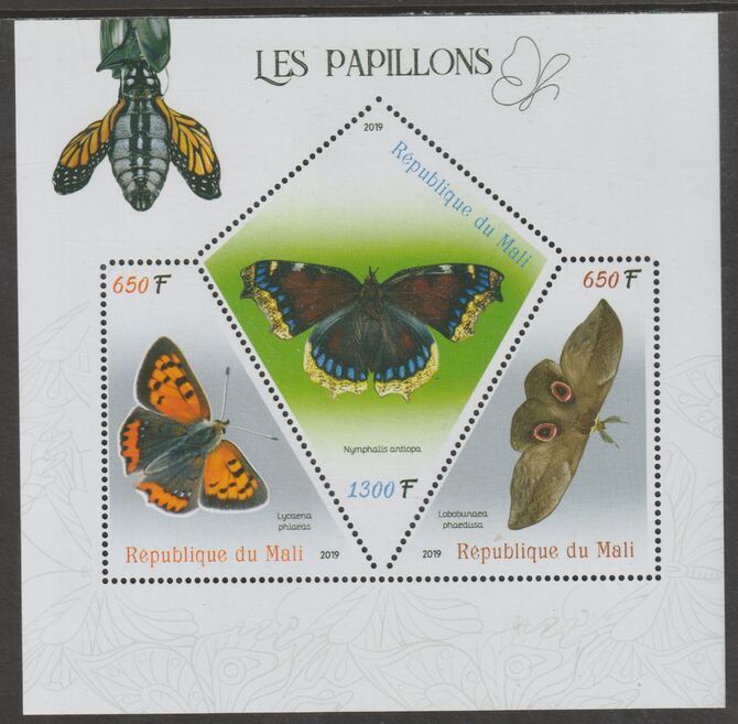 Mali 2019 Butterflies perf sheet containing three shaped values unmounted mint
