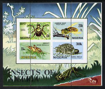 Nigeria 1986 Insects m/sheet with spectacular perf error (horiz perfs omitted and vert perfs passing through centre of stamps) SG MS 532var unmounted mint