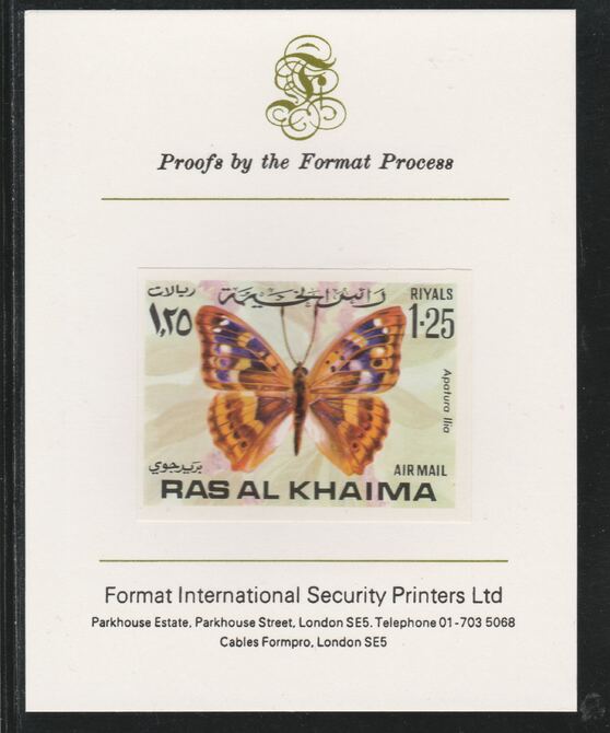 Ras Al Khaima 1972 Butterflies 1.25R,imperf mounted on Format International proof card, as Mi 617B