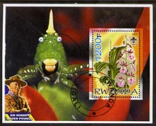 Rwanda 2005 Orchids perf m/sheet with Scout Logo, background shows insect & Baden Powell, fine cto used