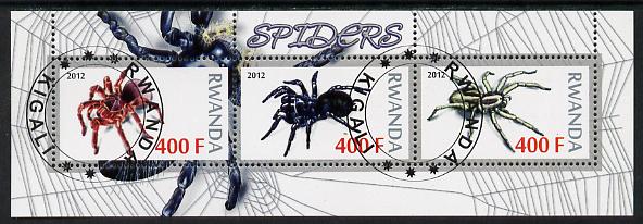 Rwanda 2012 Spiders perf sheetlet containing 3 values fine cto used