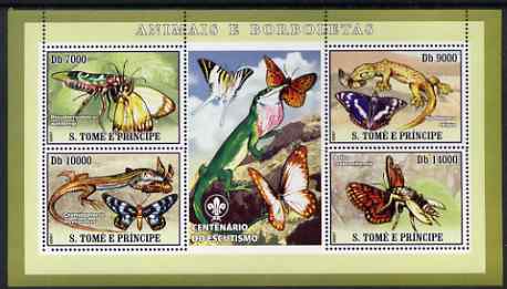 St Thomas & Prince Islands 2007 Animals & Butterflies #2 perf sheetlet containing 4 values plus label (with Scout logo) unmounted mint