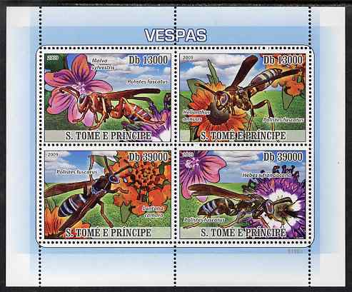 St Thomas & Prince Islands 2009 Bees & Flowers perf sheetlet containing 4 values unmounted mint