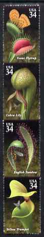 United States 2001 Carnivorour Plants strip of 4 self adhesive unmounted mint SG 4000a